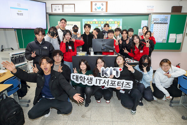 KT는 7일 KT 대학생 IT 서포터즈(KIT)가 인천시 옹진군 영흥중학교에서 2025년 첫 번째 ‘찾아가는 AI 교육’을 진행했다고 8일 밝혔다. 올해 첫 ‘찾아가는 AI 교육’에서 KIT 봉사단원들은 영흥중학교 3학년 학생들에게 AI 코딩 플랫폼과 코딩 로봇으로 실습교육을 함께 하고, 올바른 AI 활용과 디지털 윤리에 대한 토론도 진행했다. 또 중학교 3학년 학생들이 공통적으로 가지고 있는 고등학교 진학 등 진로에 대한 고민을 들어주고, 수험생 경험을 공유하는 등 멘토링 시간도 가졌다. KIT는 지역간 디지털 격차 해소를 위해 KT가 운영하고 있는 대학생 IT 봉사단으로 KT 임직원과 전문가의 코칭을 받으며 직접 AI 코딩 커리큘럼을 개발하고 실행하는 교육자 역할과 멘토 경험을 할 수 있다.